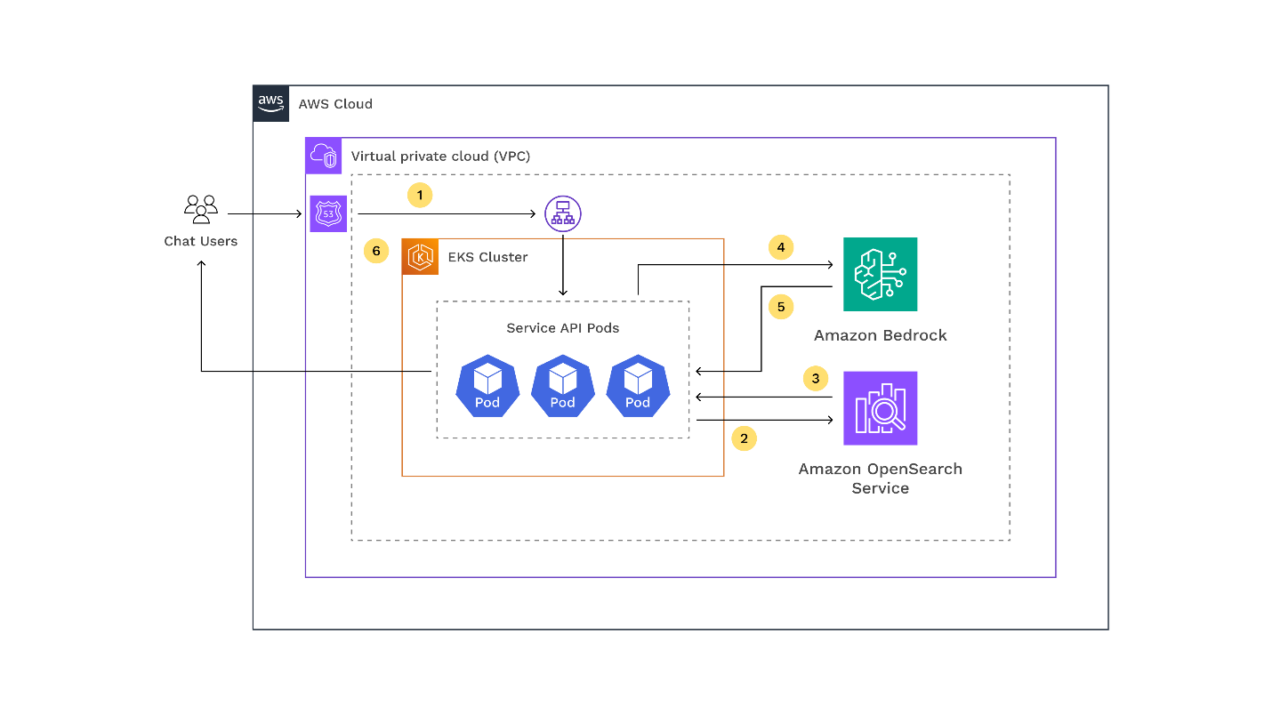 1. User requests the GenAI application hosted on the Amazon EKS cluster