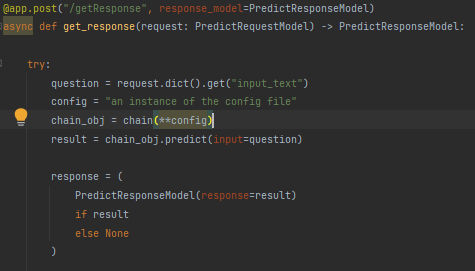 The application invokes the “/getResponse” endpoint when a user poses a question, as demonstrated in the screenshot below: